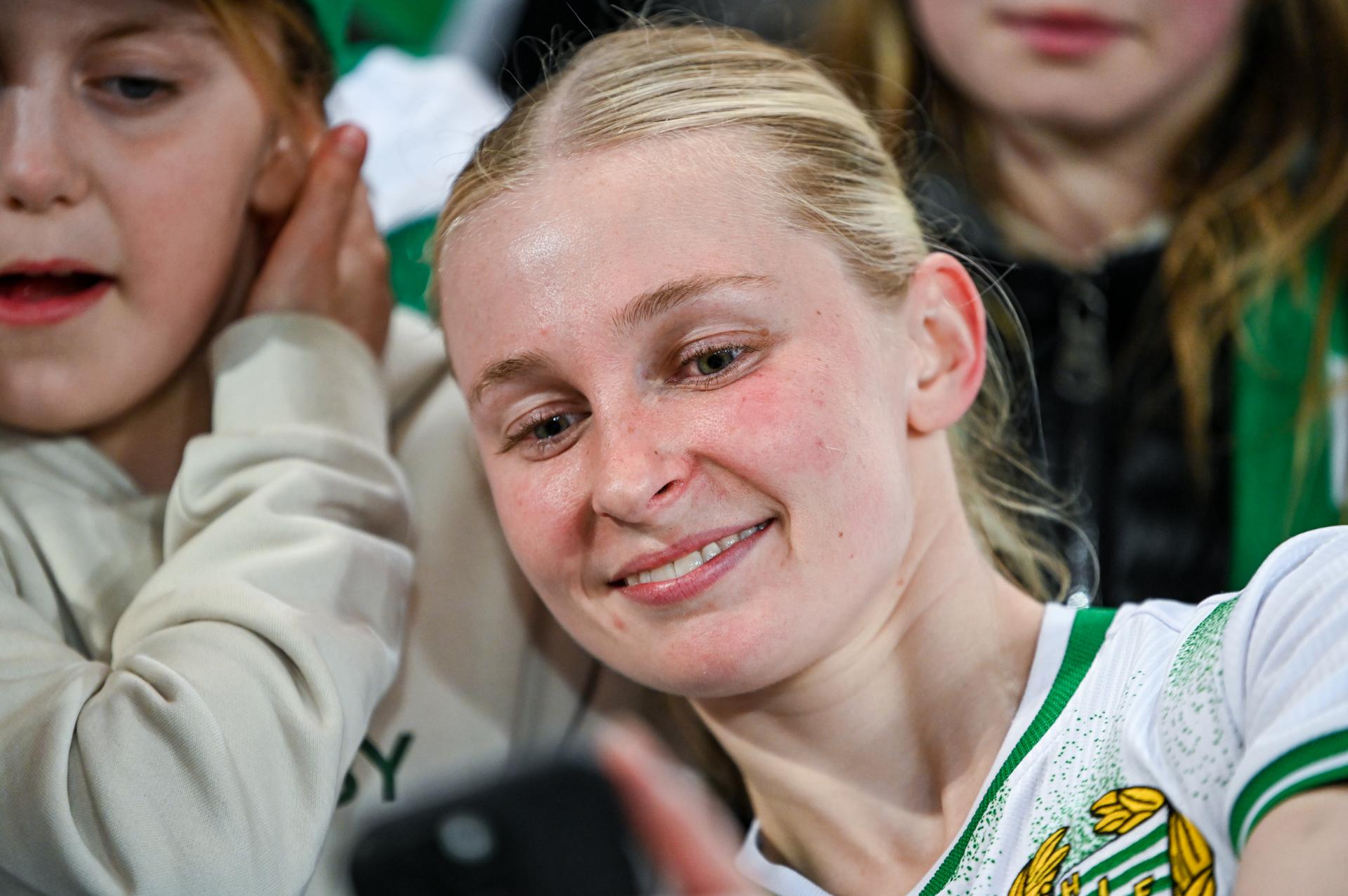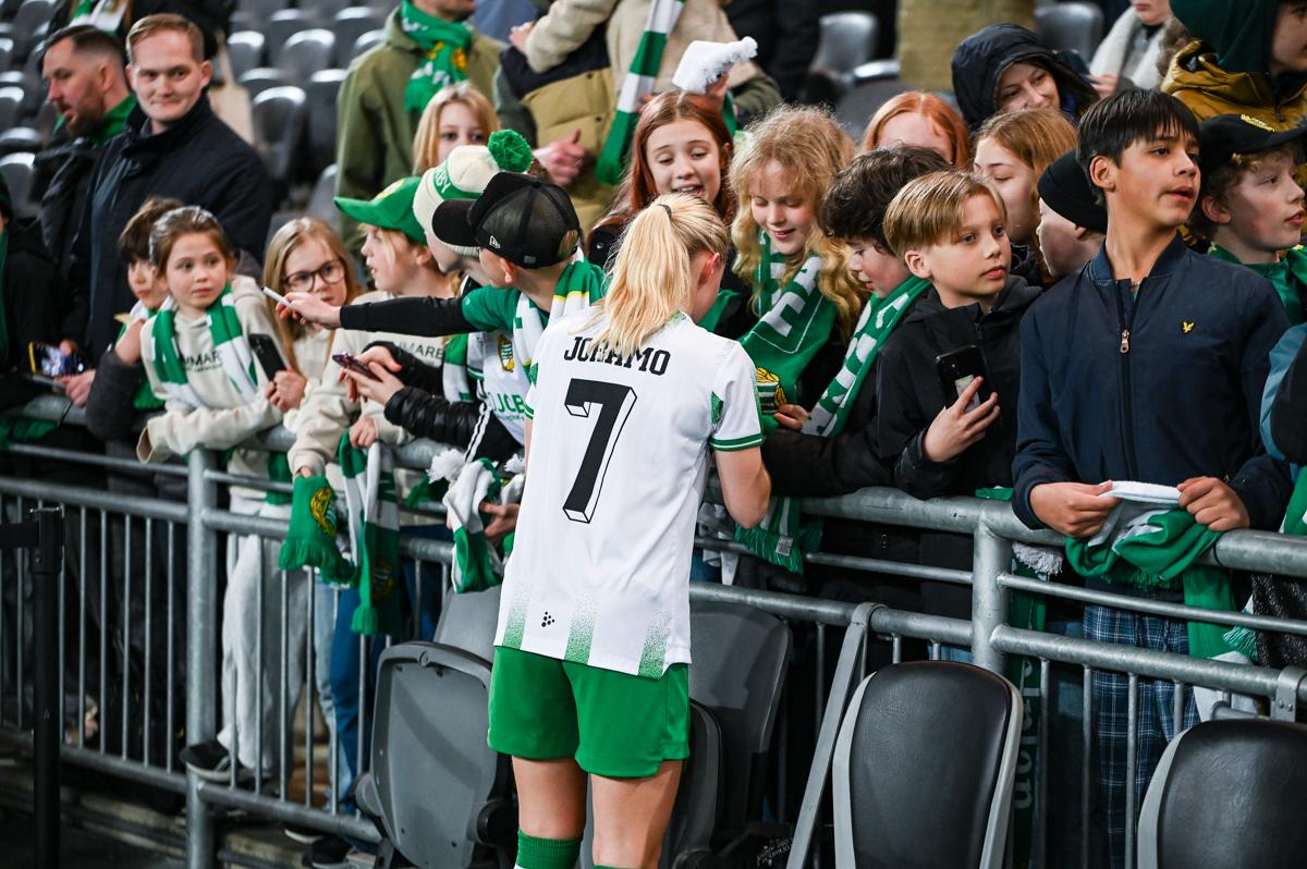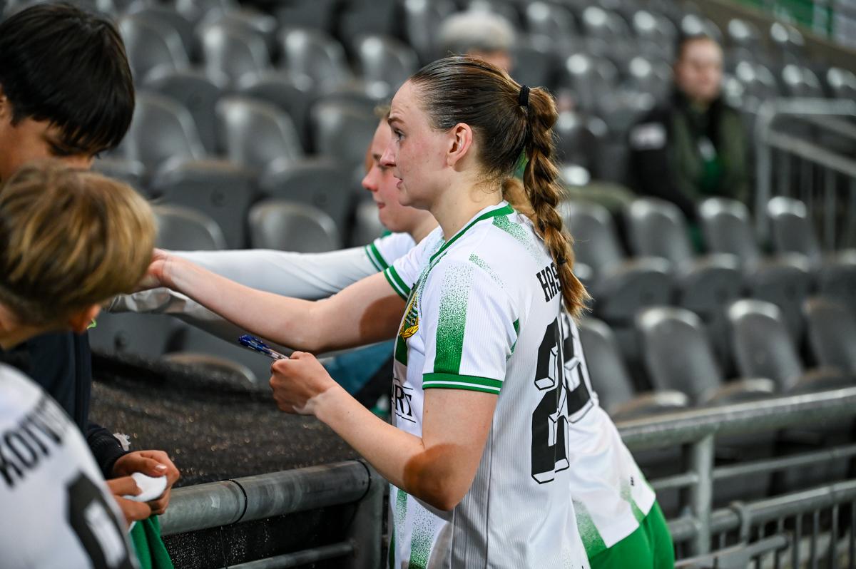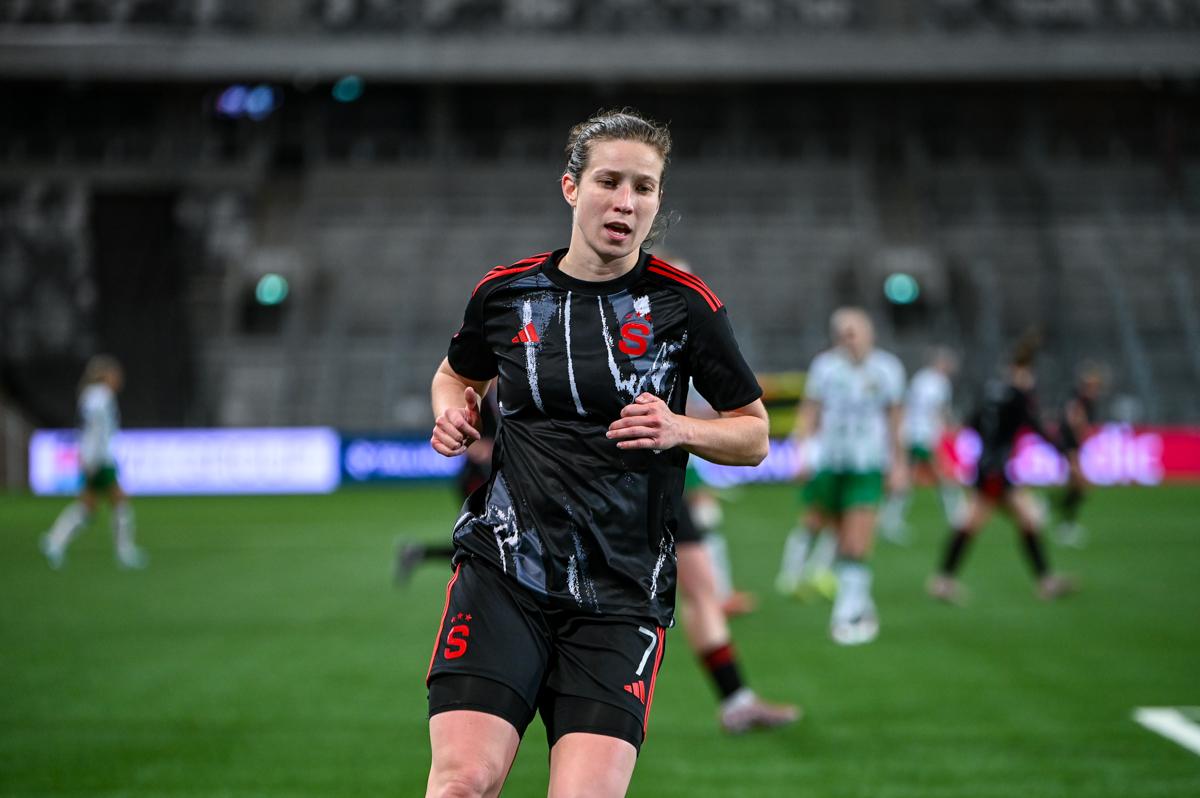 Først hamret hun inn et halvvolley opp i krysset med venstrefoten mot Vittsjö i den svenske cupen, så kopierte hun målet borte mot Sparta Praha forrige uke, men denne gang med høyrebenet. Åtte dager senere la hun på en ny kopi da hun sørget for gårsdagens første scoring på 3 Arena. – Det er alltid gøy å gjøre mål, og nå har jeg gjort det et par ganger, så det er kjempegøy. Jeg går bare for det, så gjelder det bare å få rett treff på ballen, sier hun til et samlet pressekorps i mix-sonen etter kampen.